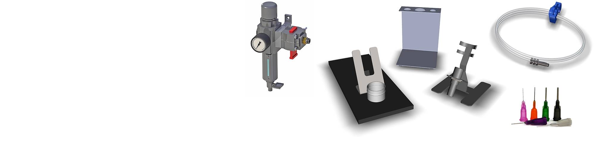 Dymax 为您的点胶产品解决方案提供全系列的点胶配件,包括流体和空气管套件、支架、管道等。