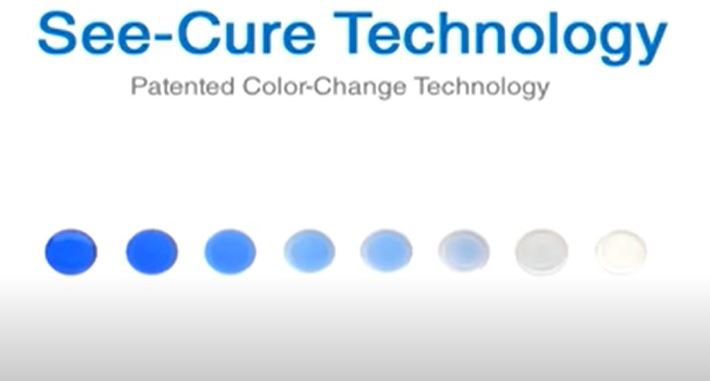 See-Cure technology transitions the adhesive from blue to pink to indicate full cure.